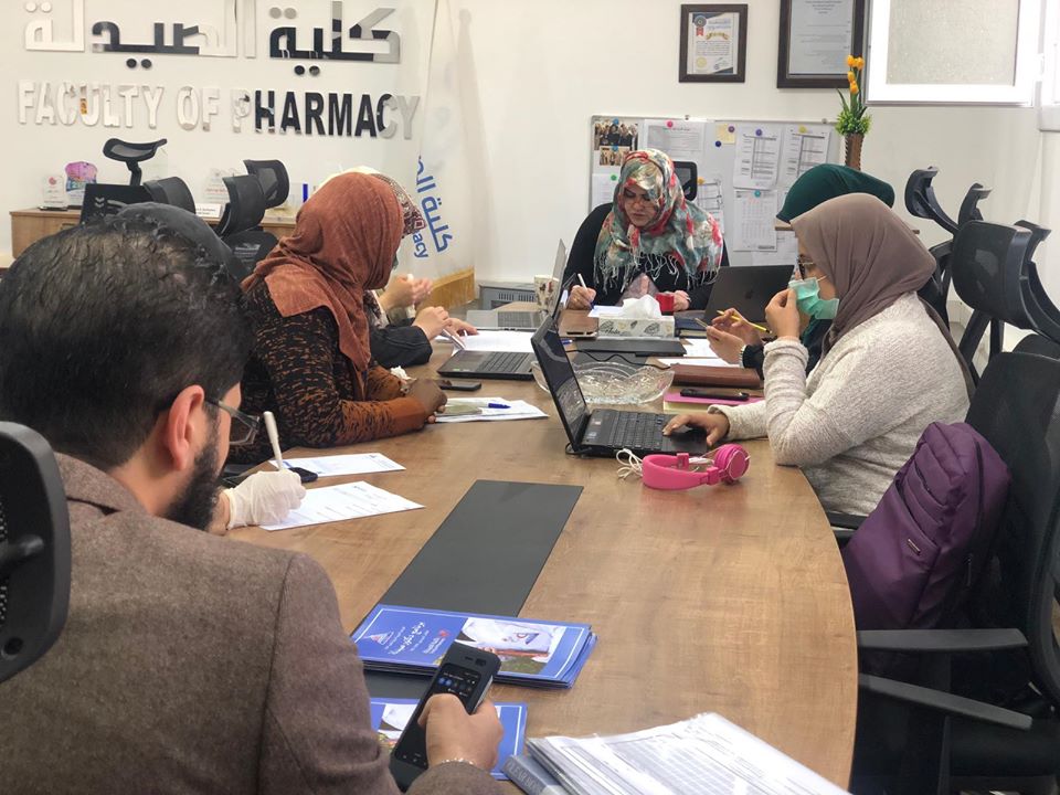 The Faculty of Pharmacy Council met on Monday 23rd of March 2020 in its twenty-ninth regular meeting for the academic year 2019/2020. Some members of the Council were present from the university’s headquarters, while others participated through the Zoom program to discuss the following items: 1. Reports received from the parties concerned with the implementation of the distance learning process at the Faculty. 2. Follow up on the arrangements for the Faculty’s annual scientific day. 3. Approve the results of the continuous evaluation of the eleventh educational block for third year Pharmacy students. 4. Review the reports of the Faculty’s Quality Assurance Office regarding the evaluation of the second, eleventh and seventeenth educational blocks. 5. Review and discuss the minutes of the fifth meeting of the Scientific Committee of the University's Clinical Skills Center. 6. Review and discuss the minutes of the meeting of the University's Planning and Program Committee. In view of the circumstances the world is currently going through, including the state of Libya, it was decided that the next meeting of the Faculty of Pharmacy Council will be held remotely using the Zoom program on Monday 30th of March 2020 at nine thirty in the morning. May God save Libya and its people.